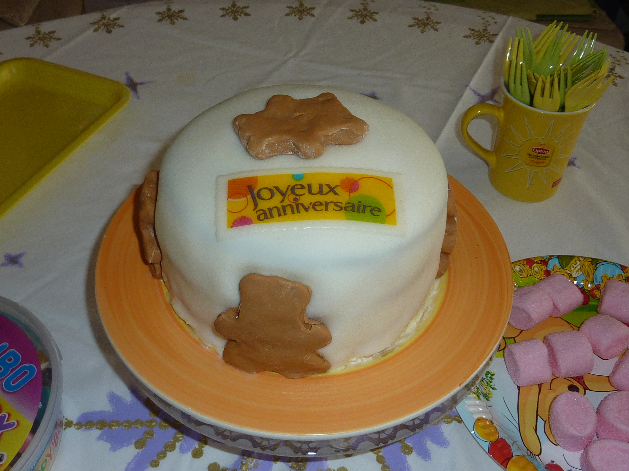 Voici la réalisation du gâteau en images (le clou de l’anniversaire, car sinon je suis restée simple sur le buffet). J’avais peur de le rater car cela m’a pris 5 heures à le réaliser (avec des interruptions bien sur) et je me suis couchée à 1 heure de matin. Et bien sur à 3 heures j’ai été réveillée par Choupinette qui avait un rhume et à 6 heures par Puce qui a été d’une humeur massacrante toute la matinée. A 12h je me suis échappée pour préparer le buffet chez mes parents. Ouf !