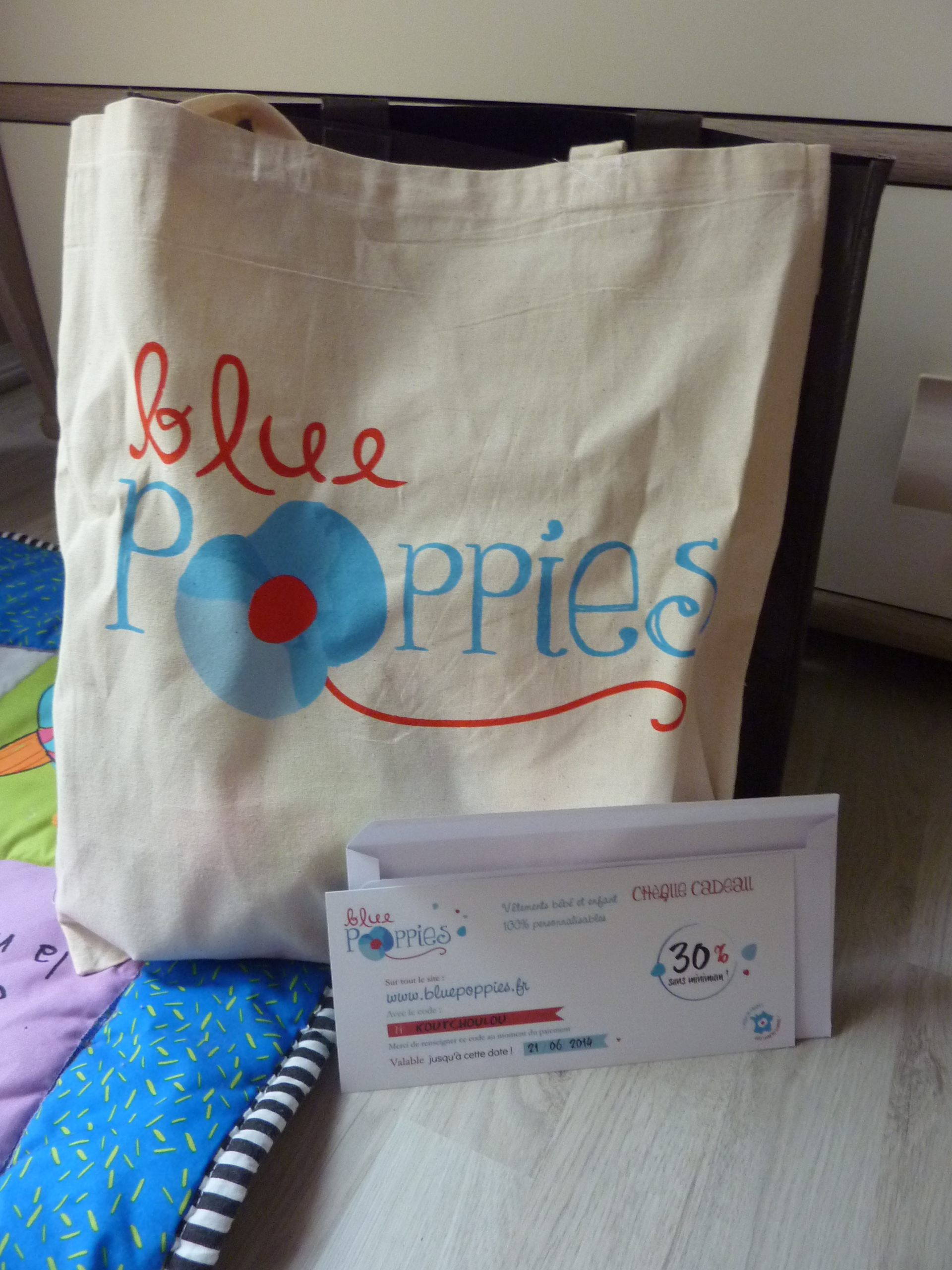 Et aussi des réductions pour un site proposant des vêtements personnalisés pour bébé: Bluepoppies (-30%). Le tout présenté dans un beau pochon et emballé dans un beau papier crépon.