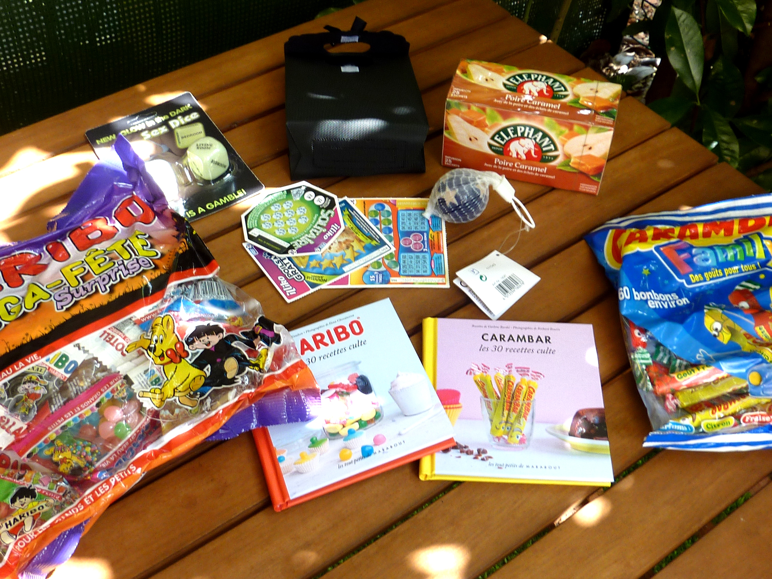 • Des carambars à la fraise hummm, des dragées, des snup gummi candy de chez Haribo, une sucette de foliieees mega sour powder.