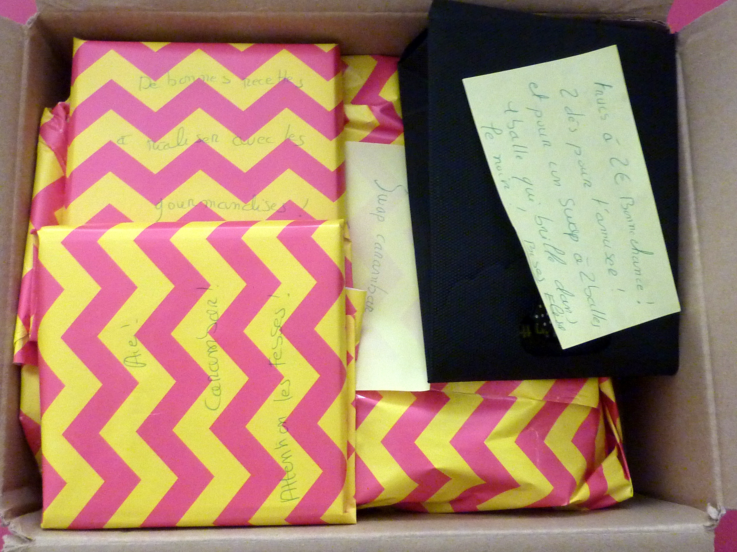 J’espère qu’elle a bien ri en ouvrant mon petit colis ! Vous trouverez plus de photos sur son blog, ici.