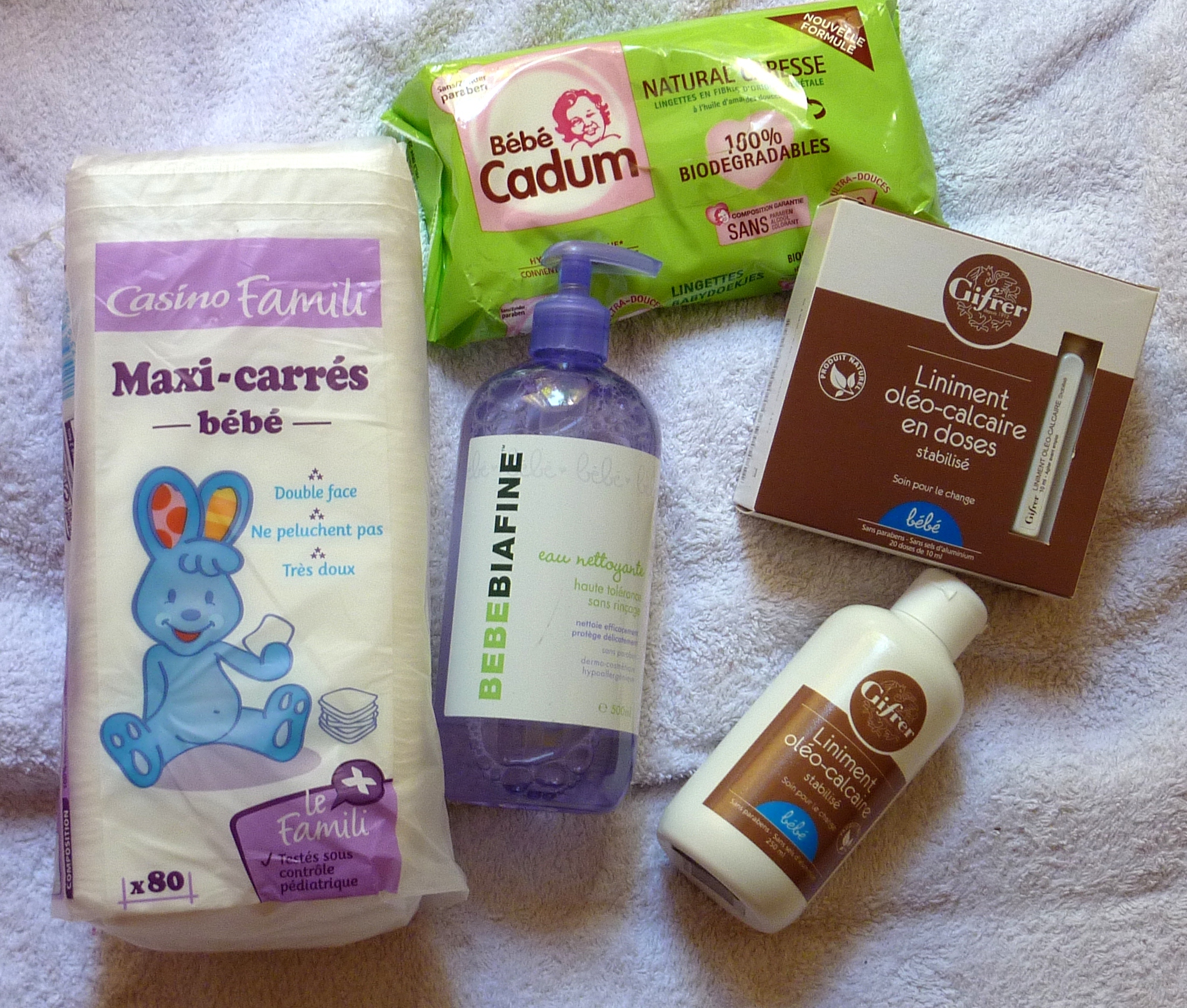 Le liniment en dosettes, bien pratique et tout le nécessaire habituel comme les lingettes pour Puce et l’eau nettoyante Biafine.
