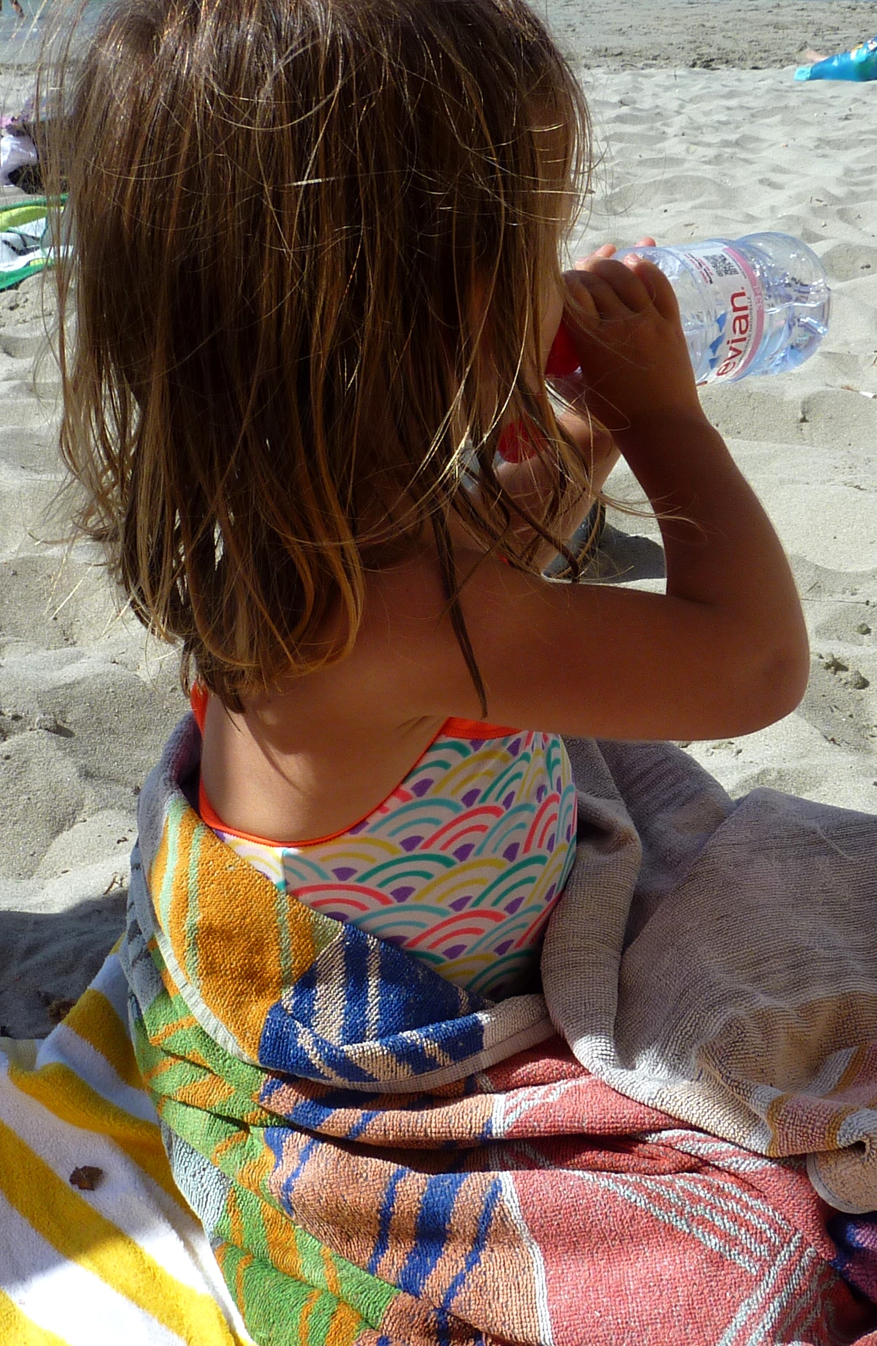 Une Choupinette frileuse donc, que je séchais contre moi. Il ne fallait surtout pas la reposer sur sa serviette avant qu’elle ne soit réchauffée ! Sinon, elle me tendait ses petits bras en pleurant. C’était mignon de la tenir comme un sushi (expression du papa) dans mes bras. Chose que je ne pourrais plus faire de la même façon l’année prochaine, j’aurais deux grandes filles à la plage. Elles joueront ensemble.
